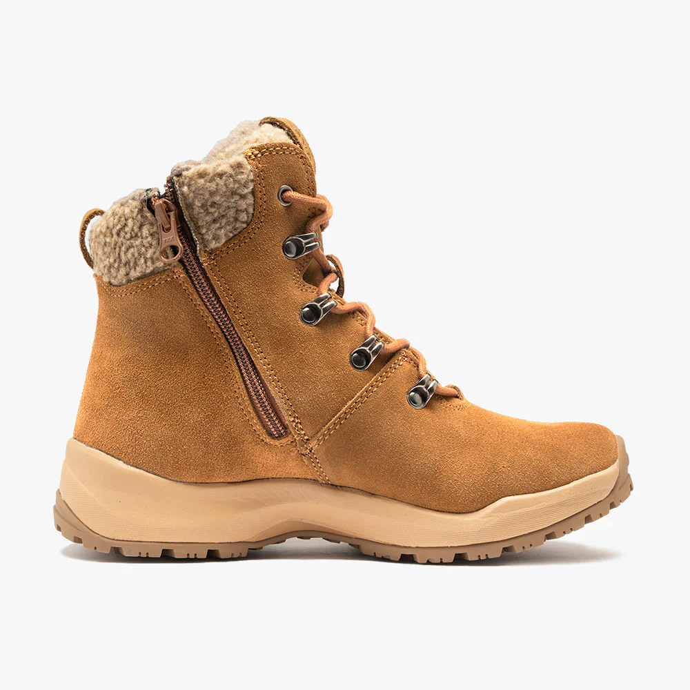 The water repellent suede upper with wool lining keeps your feet warm even in severe winter conditions. The zipper makes the shoe quick and effortless to wear.